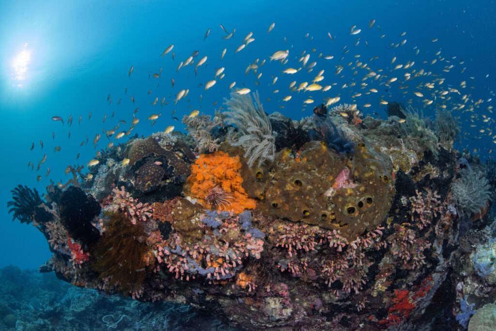 A delightful spot for divers of all levels. This site is adorned with a kaleidoscope of coral formations and is home to an array of tropical fish, nudibranchs, and sea turtles. The gentle slopes at Eva’s Point make it perfect for leisurely exploration.